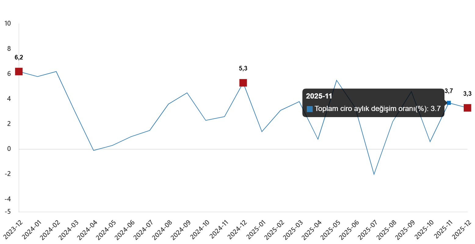 Toplam ciro aylık değişim oranı(%), Aralık 2025