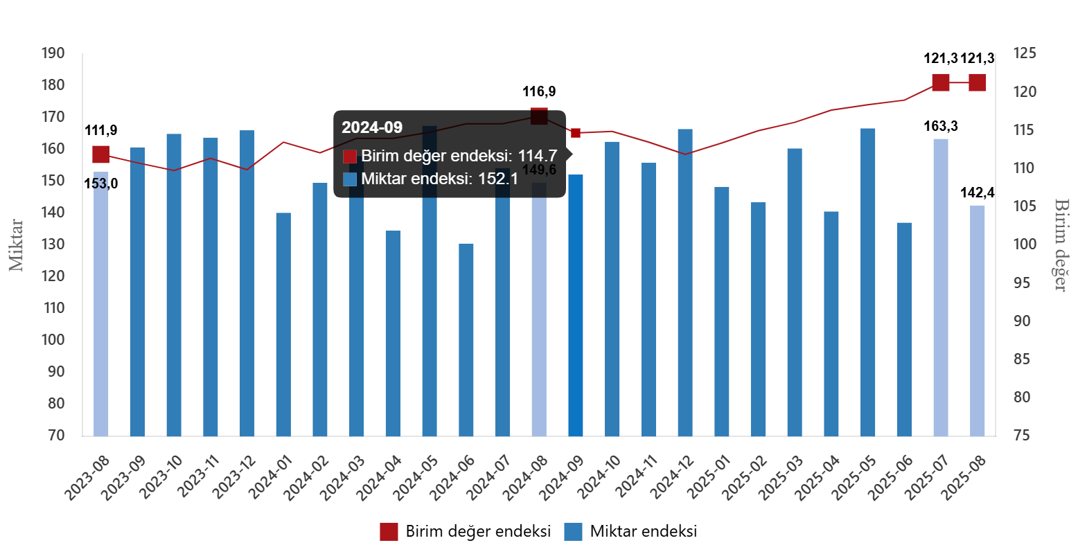 İhracat birim değer ve miktar endeksleri, Ağustos 2025