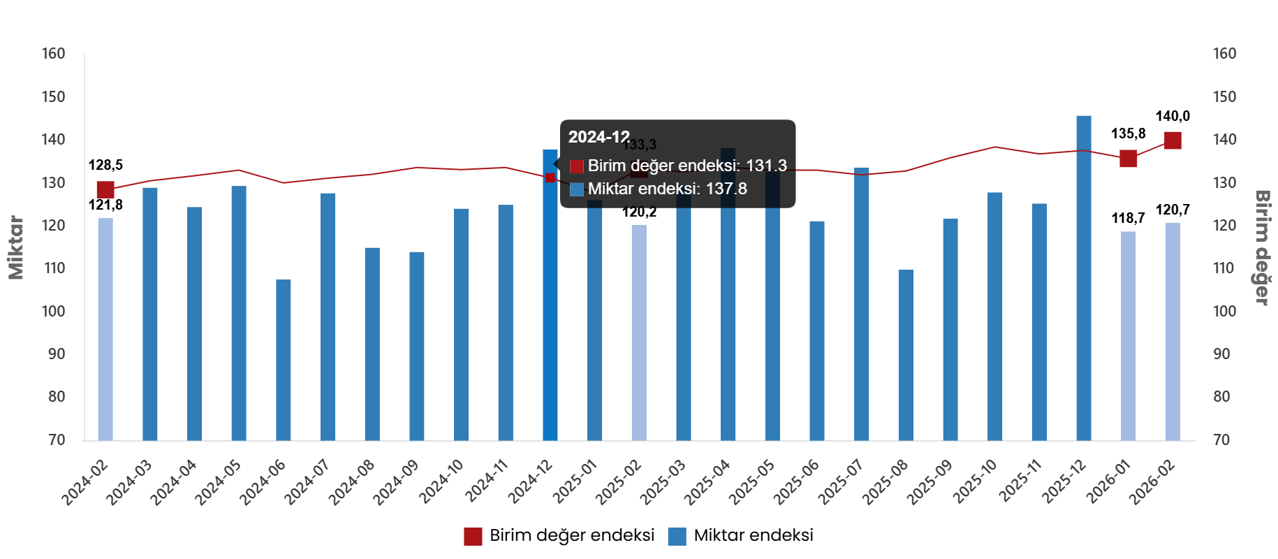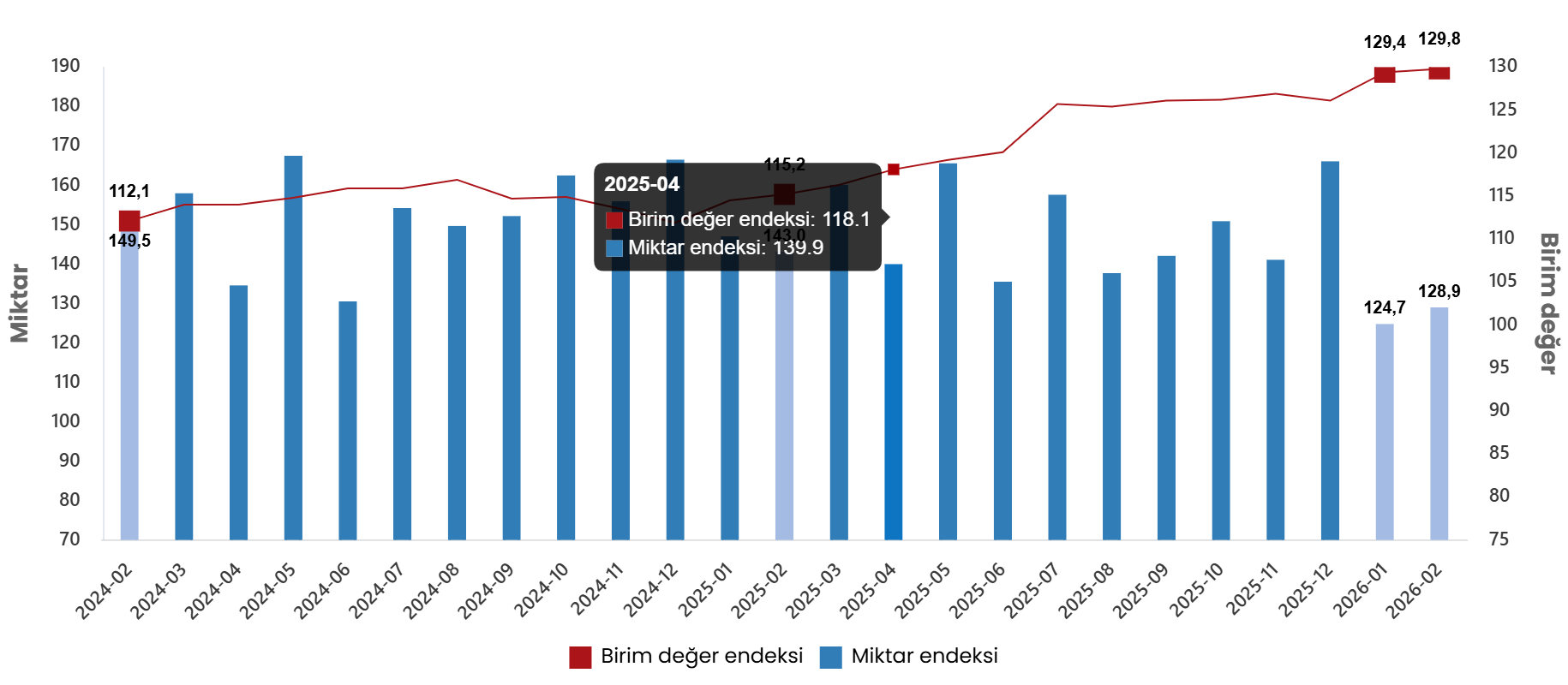İthalat birim değer ve miktar endeksleri, Şubat 2026
