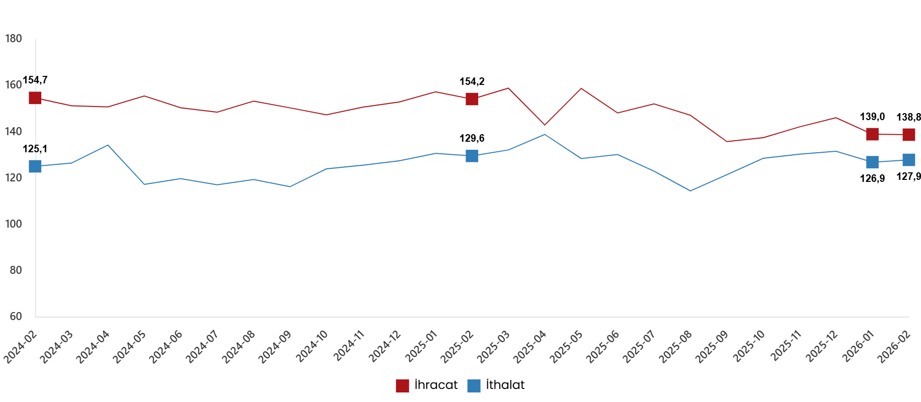 Dış ticaret hadleri, Şubat 2026