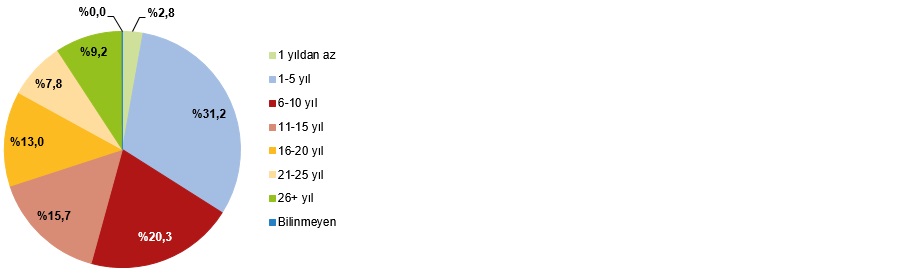 Evlilik süresine göre boşanmaların oranı, 2025