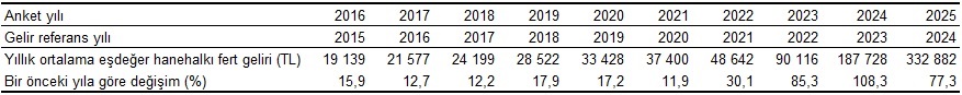 Yıllık ortalama eşdeğer hanehalkı kullanılabilir fert geliri 332 bin 882 TL oldu