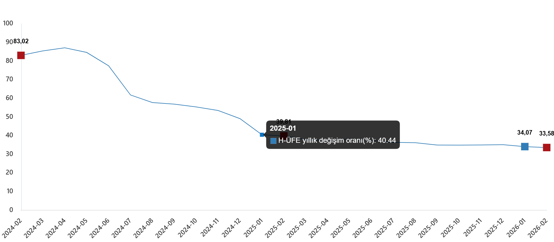 | Bir önceki yılın aynı ayına göre değişim oranı | 33,58 | 39,81 | 83,02 |