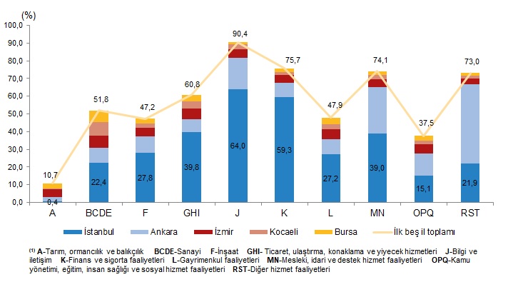 İstanbul, “tarım, ormancılık, balıkçılık” ve “diğer hizmet faaliyetleri” hariç, tüm faaliyetlerde en yüksek payı aldı
