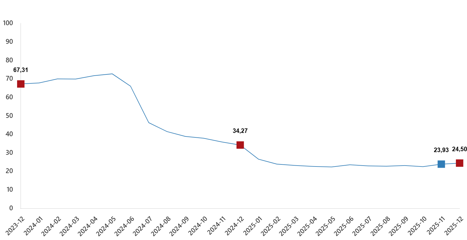 İnşaat maliyet endeksi yıllık değişim oranı(%), Aralık 2025