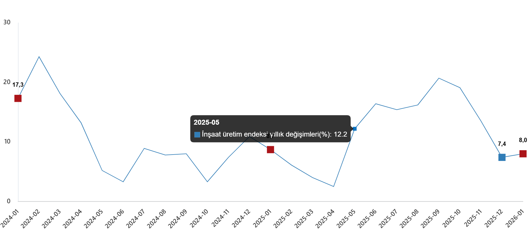 İnşaat üretimi yıllık %8,0 arttı