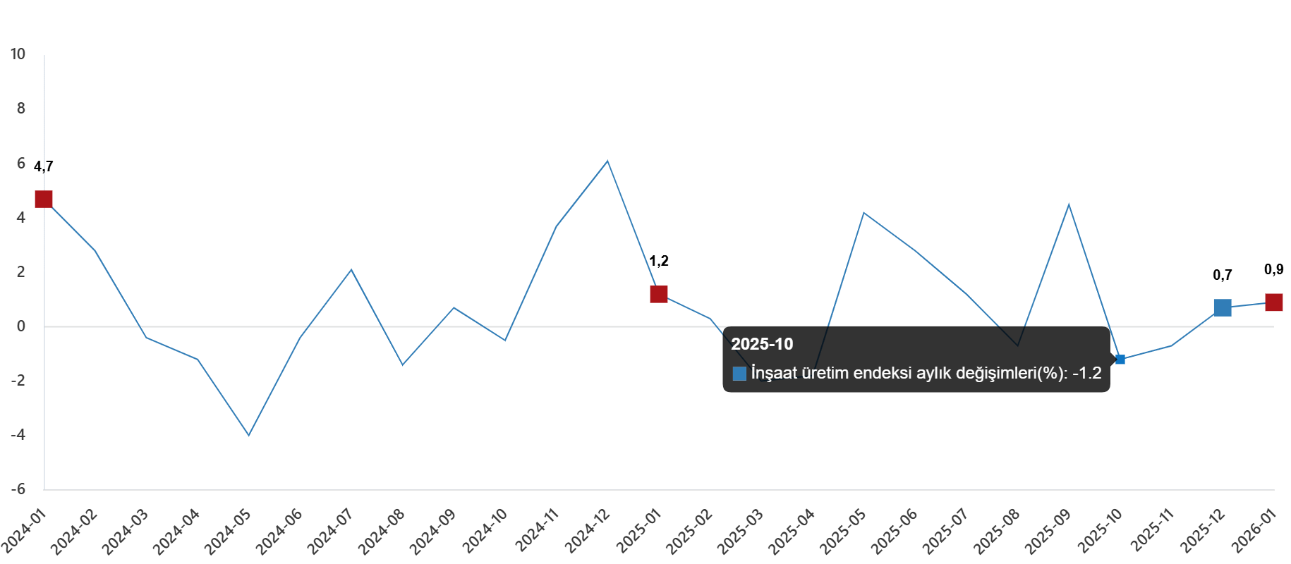 İnşaat üretim endeksi aylık değişimleri(%), Ocak 2026