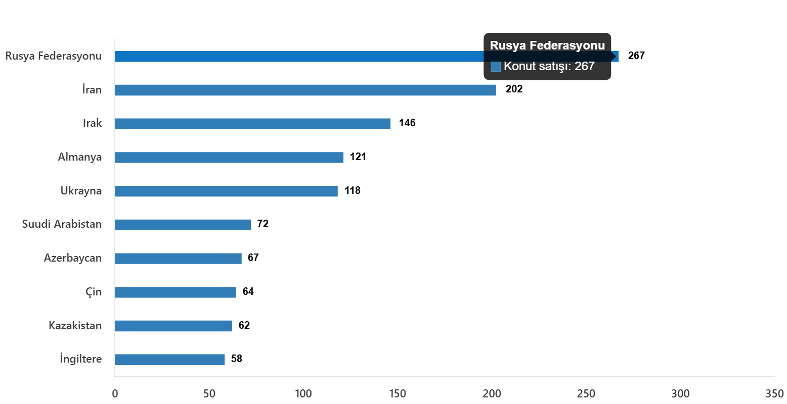 Ülke uyruklarına göre en çok konut satışı Rusya Federasyonu vatandaşlarına yapıldı