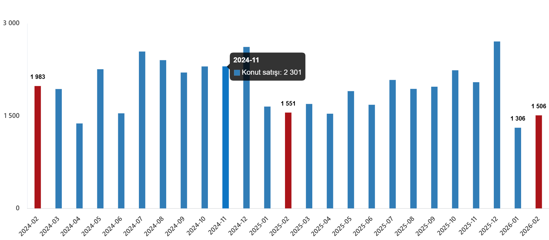 Konut satış sayısı, Şubat 2026