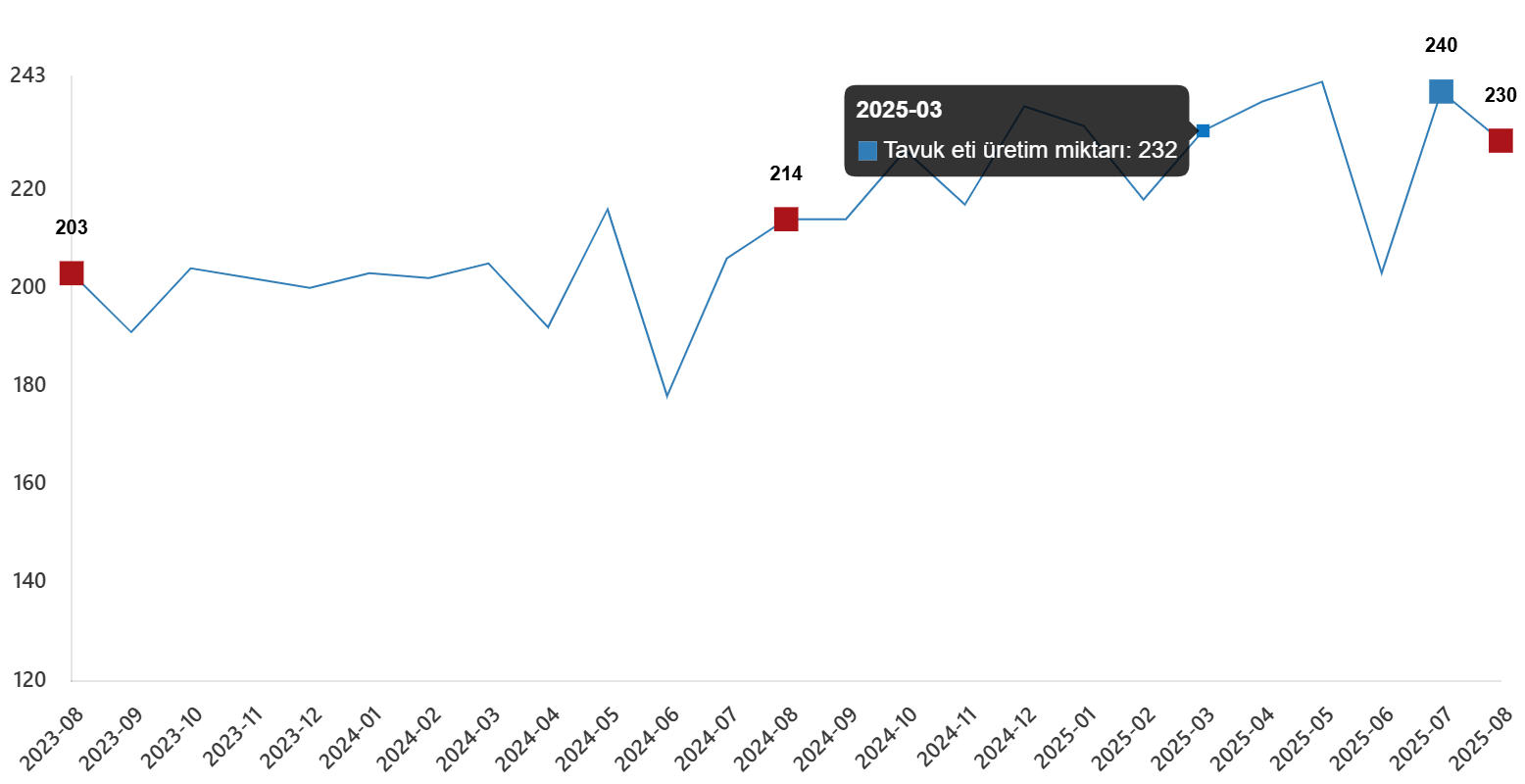 Tavuk eti üretim miktarı, Ağustos 2025