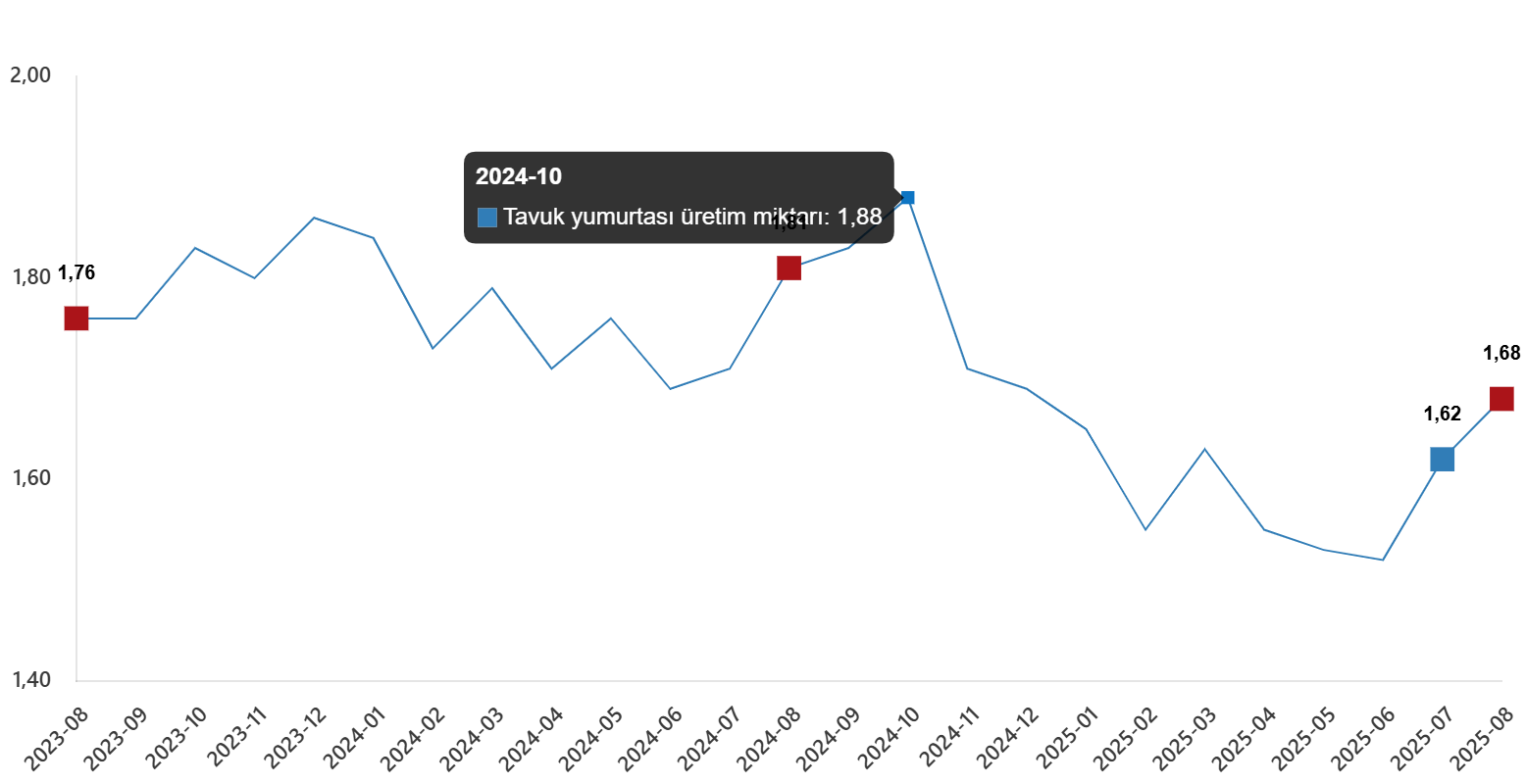 Tavuk yumurtası üretim miktarı, Ağustos 2025