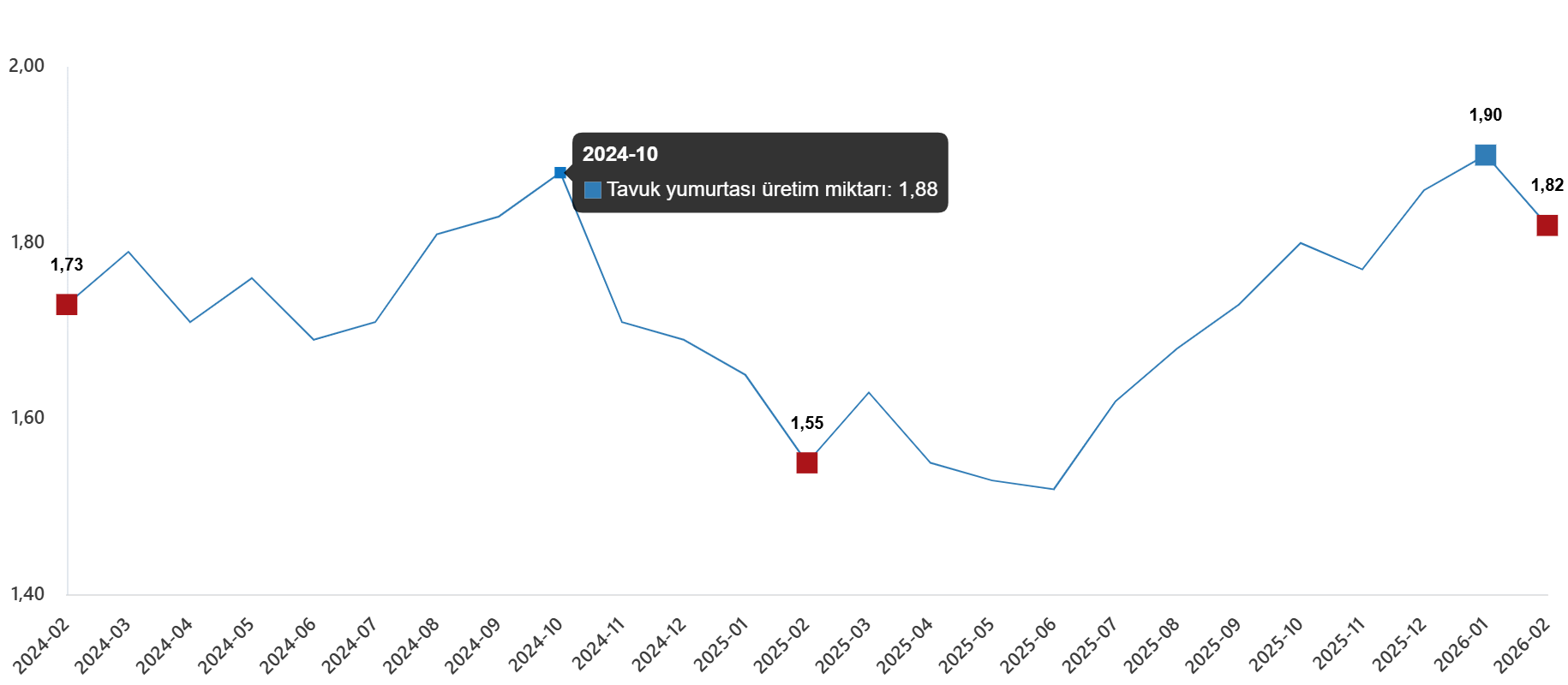 Tavuk yumurtası üretim miktarı, Şubat 2026