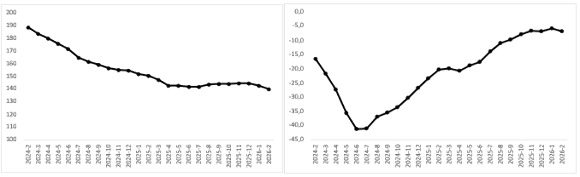 Şekil 1: Ortalama otomobil reel fiyatı (2020 Ocak=100) (Sol panel), ortalama otomobil reel fiyatının yıllık değişimi (%) (Sağ panel)