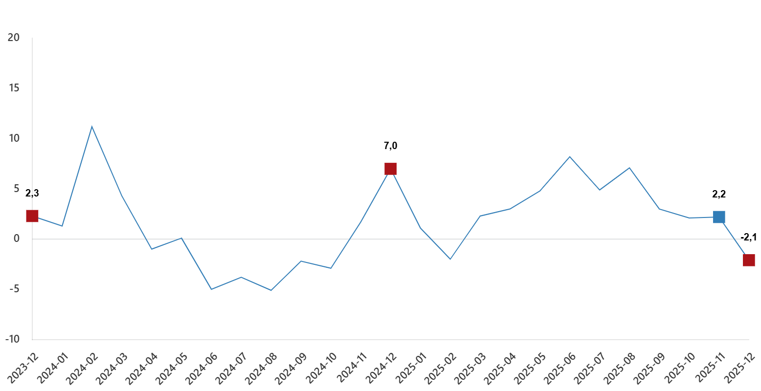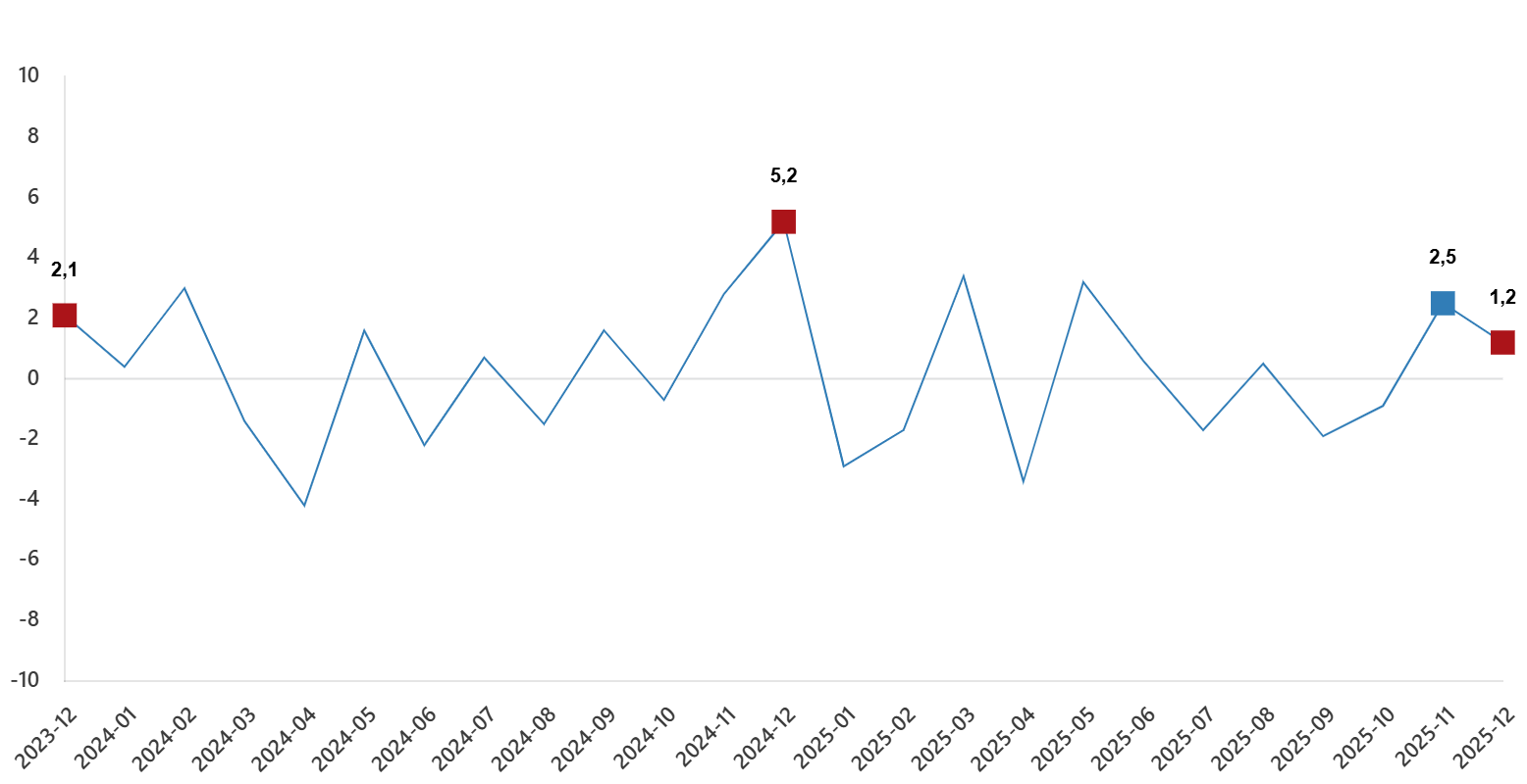Sanayi üretim endeksi aylık değişimleri(%), Aralık 2025