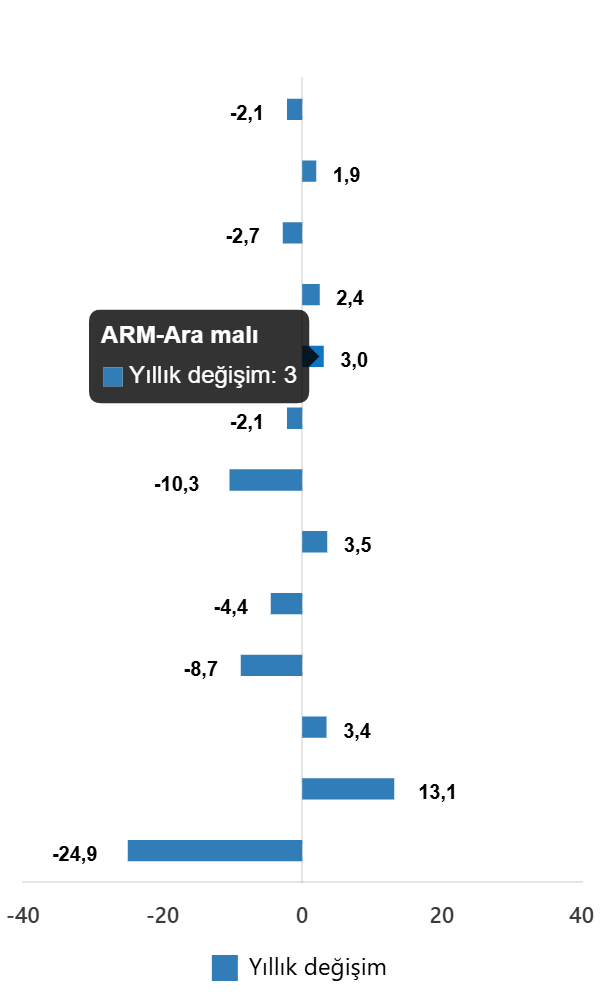 Sanayi üretim endeksi yıllık değişimleri(%), Aralık 2025