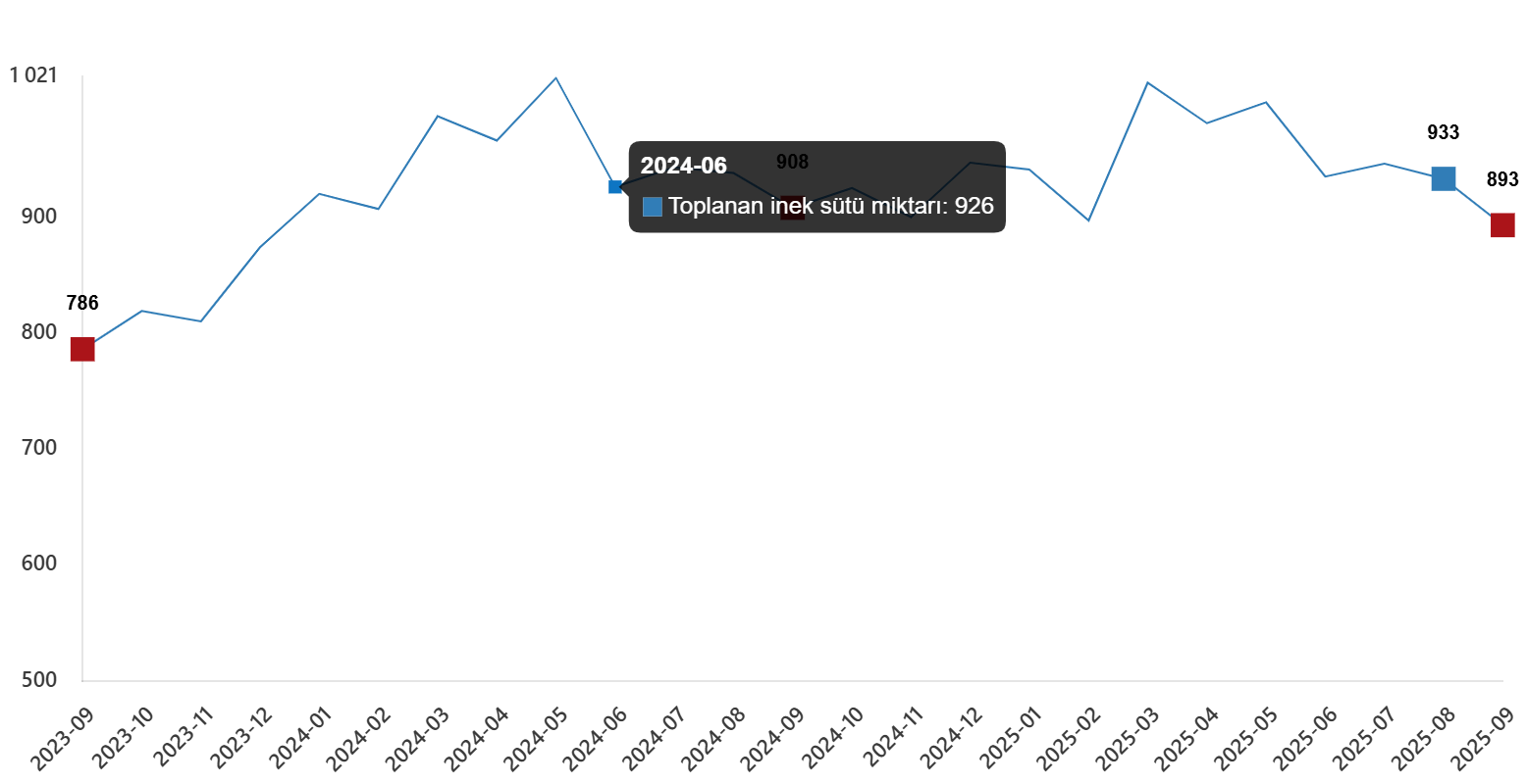 Toplanan inek sütü miktarı, Eylül 2025