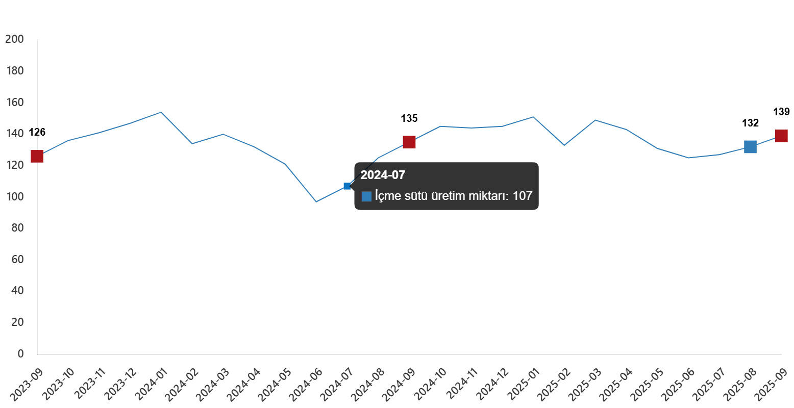 İçme sütü üretim miktarı, Eylül 2025