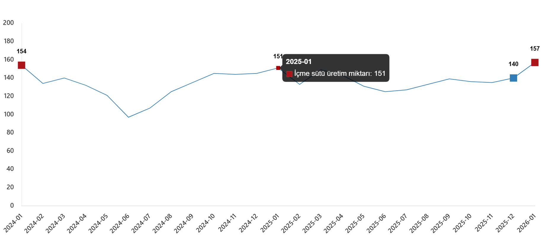 İçme sütü üretim miktarı, Ocak 2026
