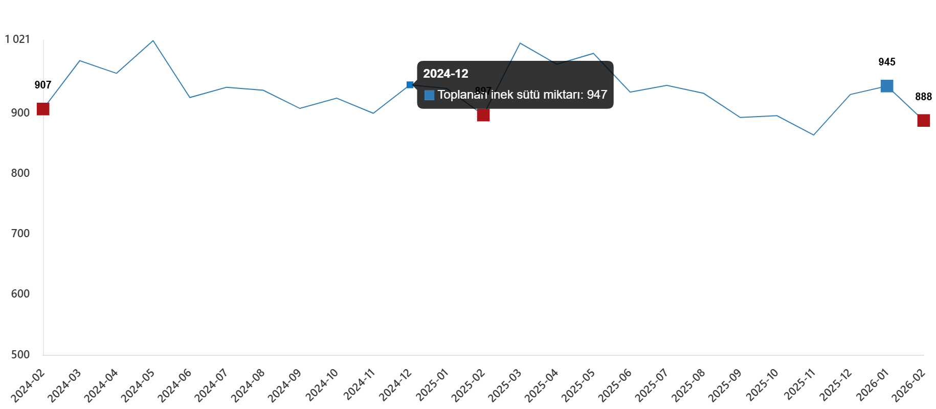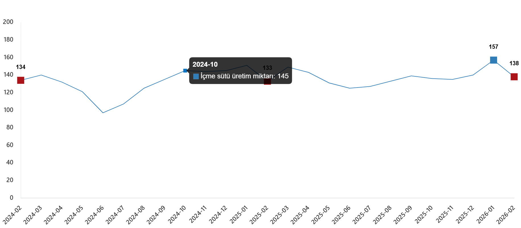 İçme sütü üretim miktarı, Şubat 2026