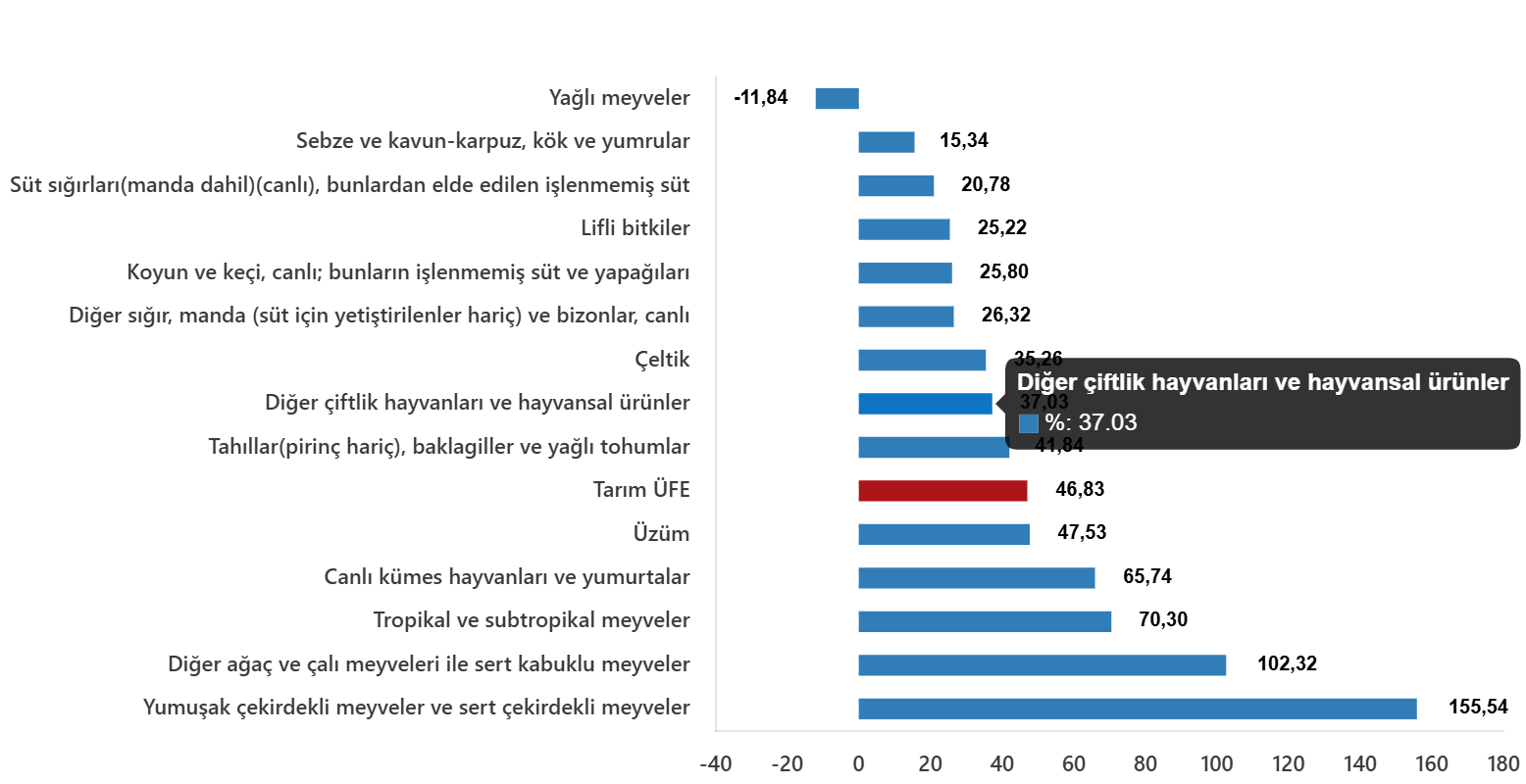 Tarım ürünleri üretici fiyat endeksi (Tarım-ÜFE) yıllık %46,83 arttı, aylık %5,80 arttı