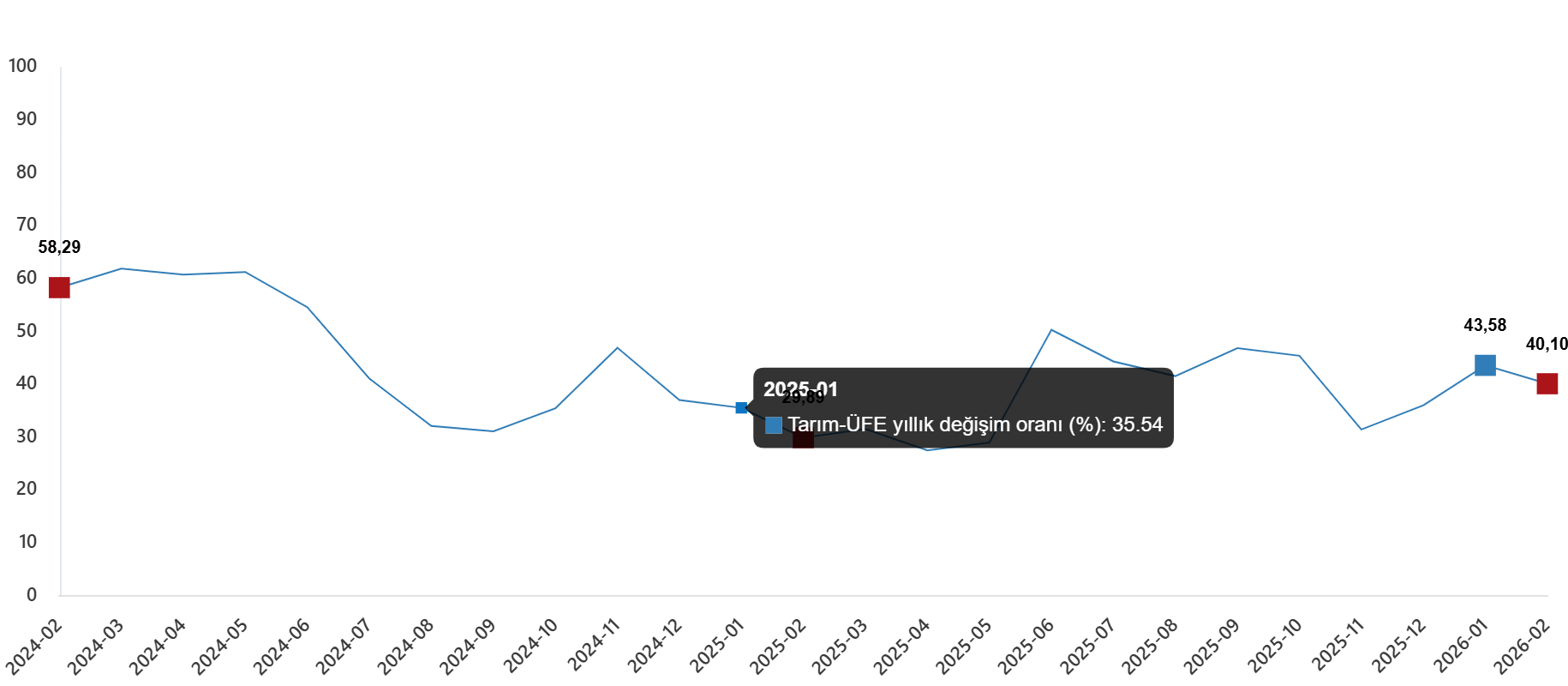 Tarım-ÜFE yıllık değişim oranı (%), Şubat 2026
