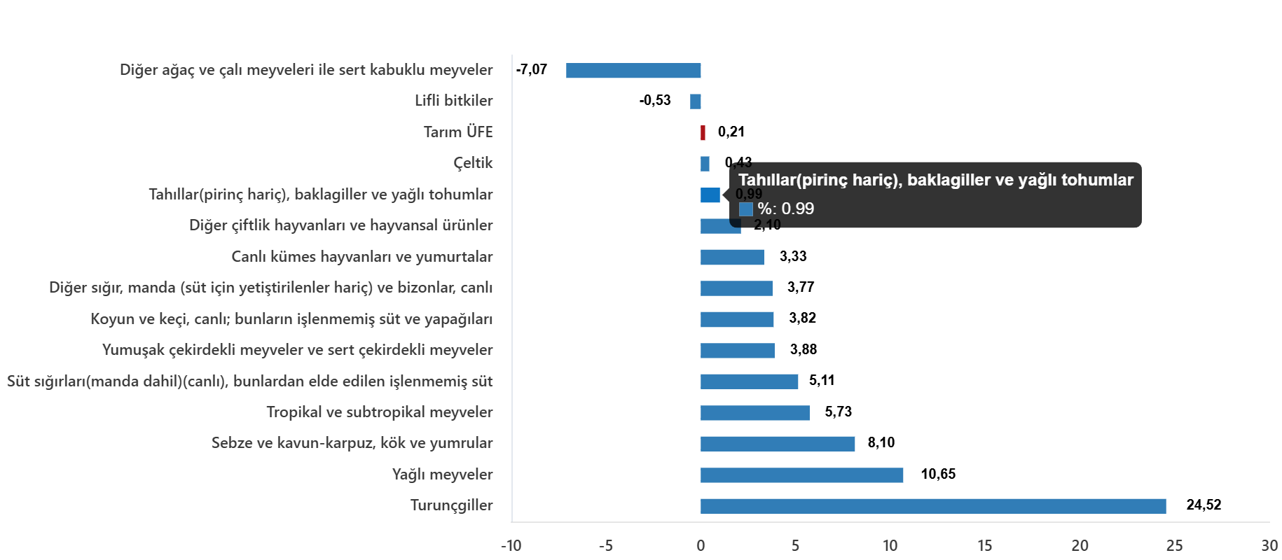 Tarım ürünleri üretici fiyat endeksi (Tarım-ÜFE) yıllık %40,10 arttı, aylık %0,21 arttı
