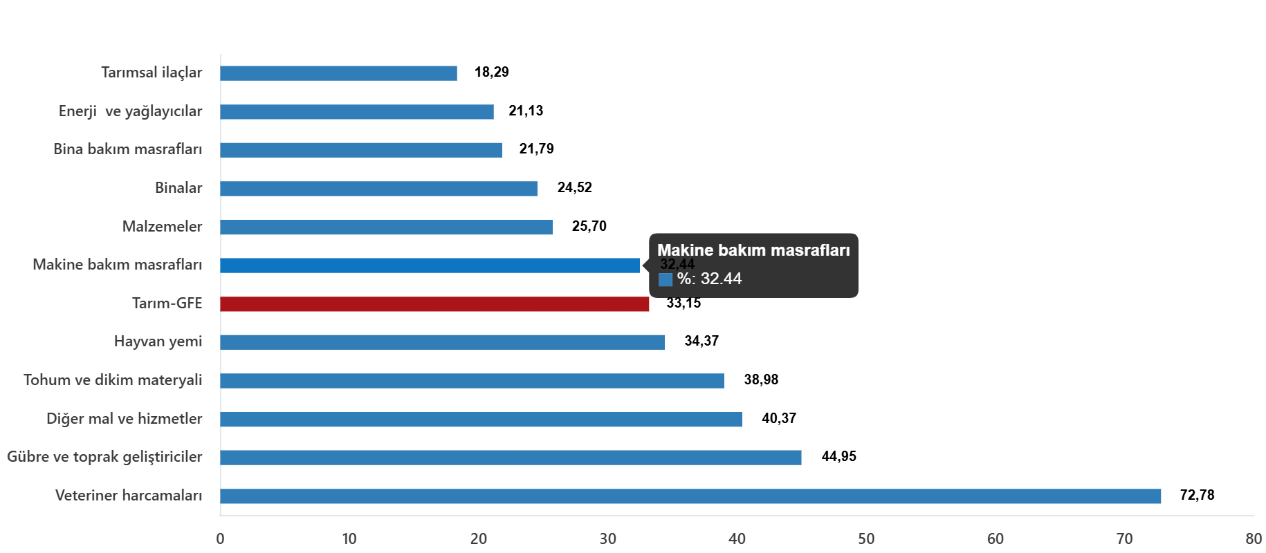 | Tarımda kullanılan mal ve hizmetler | 825,68 | 1,14 | 34,48 | 34,48 | 32,68 |