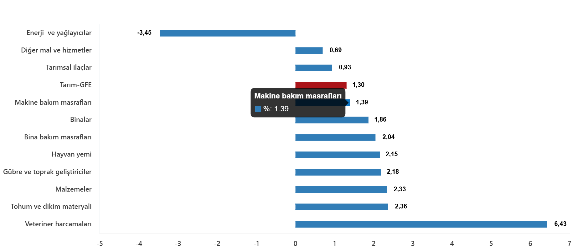 Ana gruplarda bir önceki aya göre, tarımda kullanılan mal ve hizmetler endeksinde %1,14 artış, tarımsal yatırıma katkı sağlayan mal ve hizmetler endeksinde %2,28 artış gerçekleşti. Bir önceki yılın aynı ayına göre tarımda kullanılan mal ve hizmetler endeksinde %34,48 artış, tarımsal yatırıma katkı sağlayan mal ve hizmetler endeksinde %25,56 artış gerçekleşti.