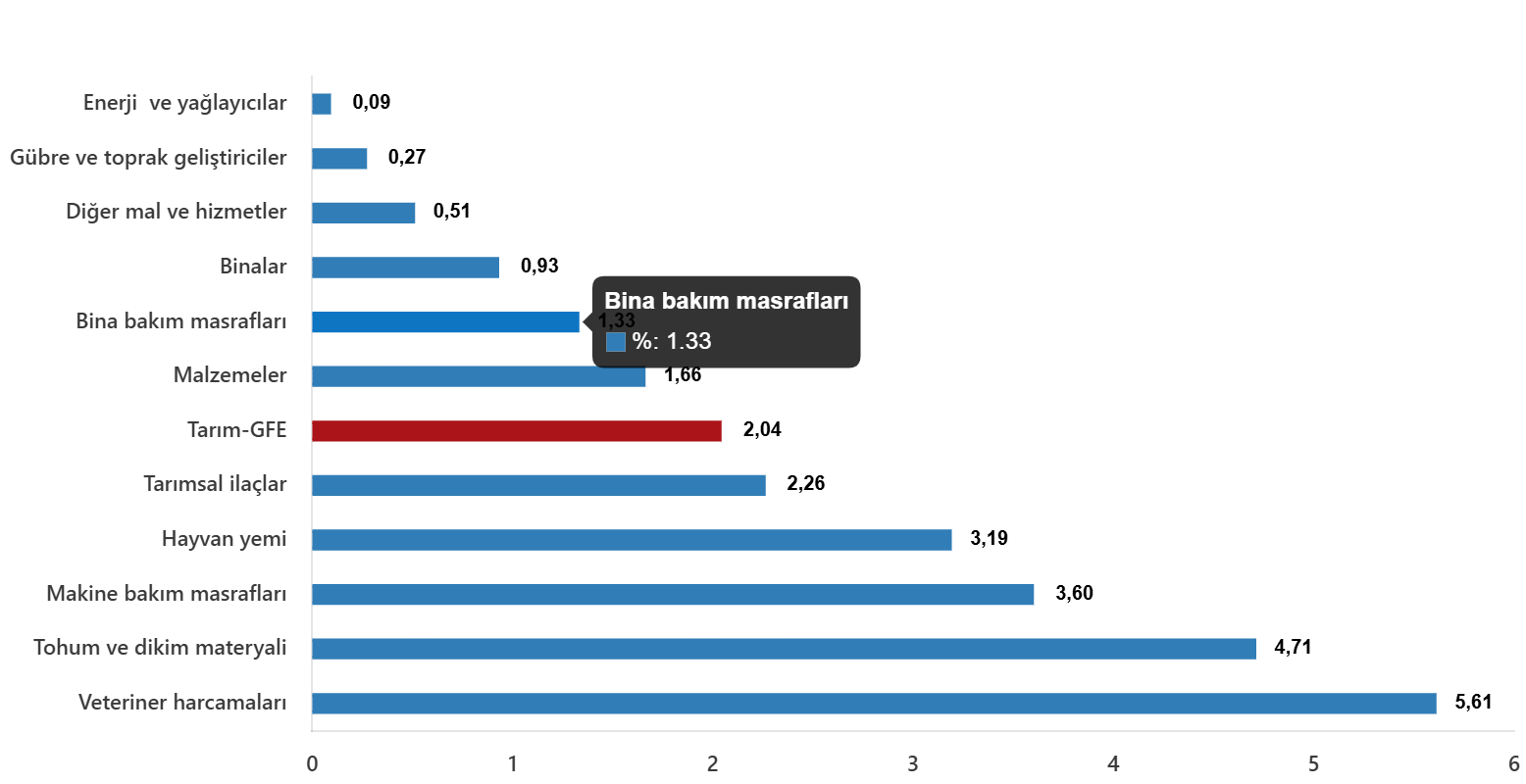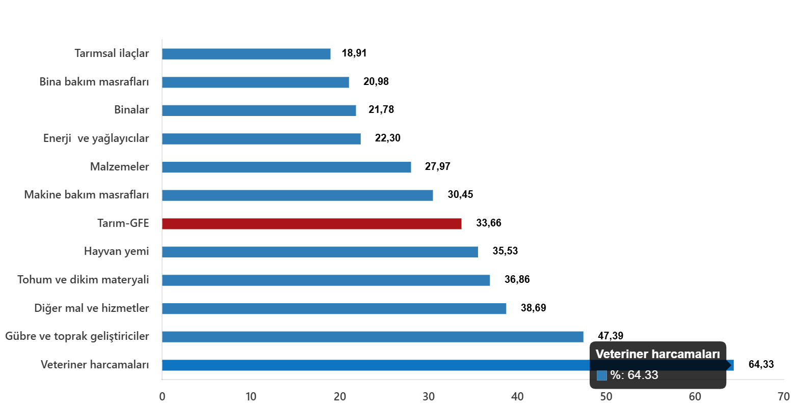 | Tarımda kullanılan mal ve hizmetler | 800,61 | 2,12 | 30,40 | 34,79 | 32,01 |