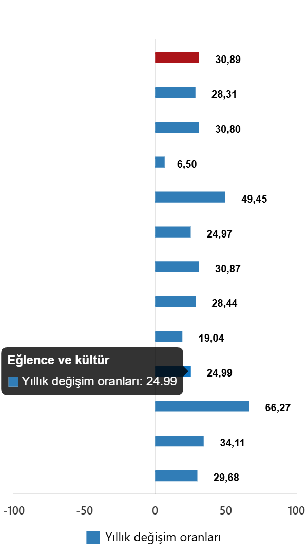 | Bir önceki yılın aynı ayına göre değişim oranı | 30,89 | 44,38 | 64,77 |