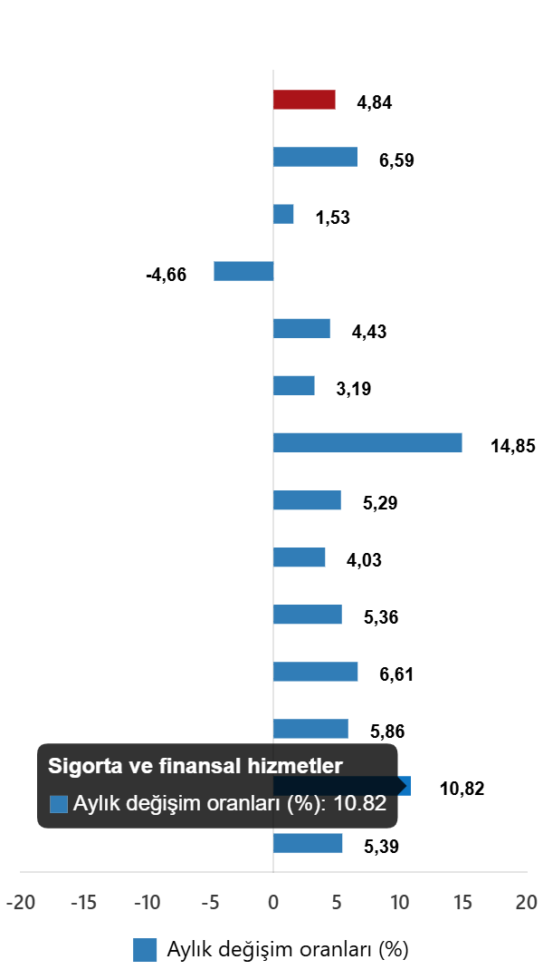 | Bir önceki aya göre değişim oranı | 4,84 | 5,03 | 6,70 |