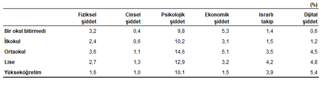 Ekonomik şiddet en az %8,9 ile yükseköğretimi tamamlayan kadınlarda görüldü