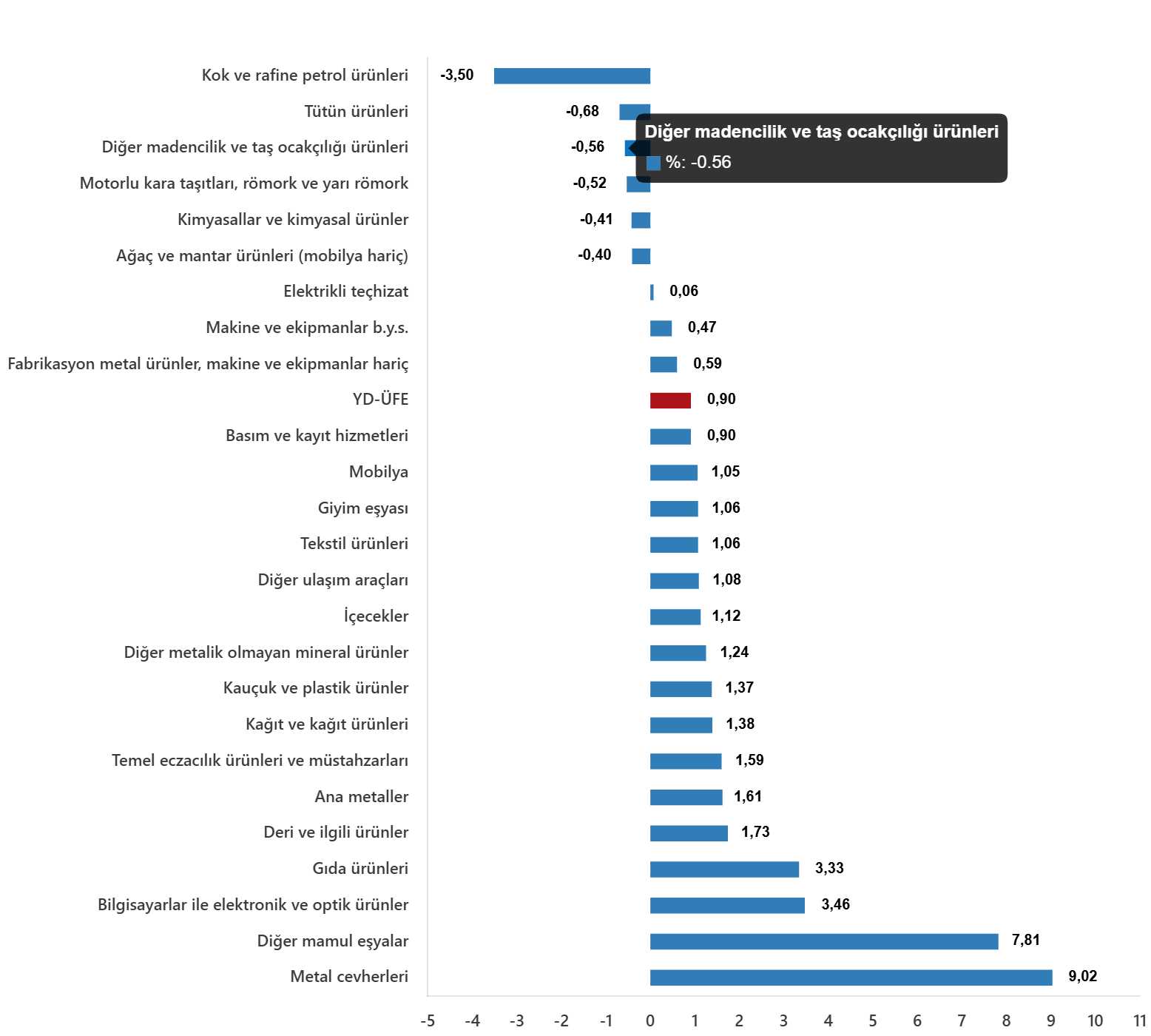 YD-ÜFE imalat ürünlerinde aylık %0,83 arttı