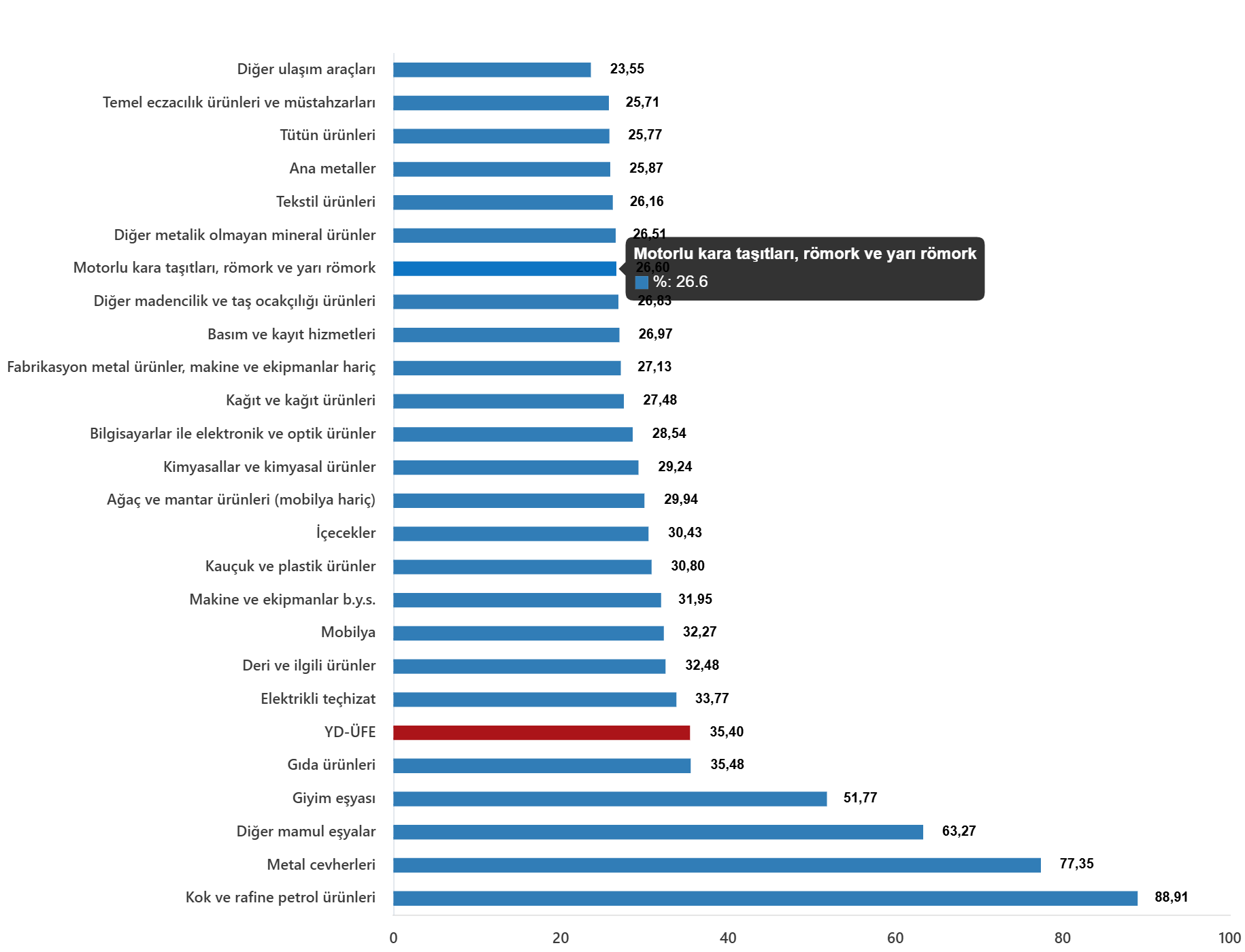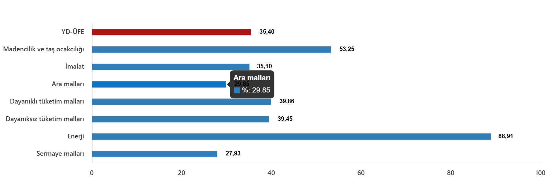 YD-ÜFE imalat ürünlerinde yıllık %35,10 arttı