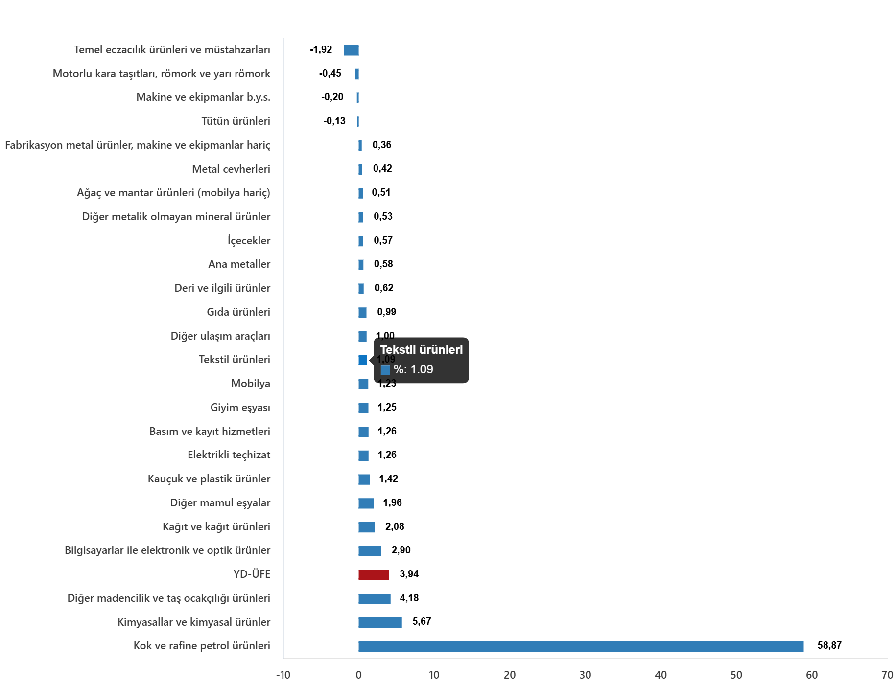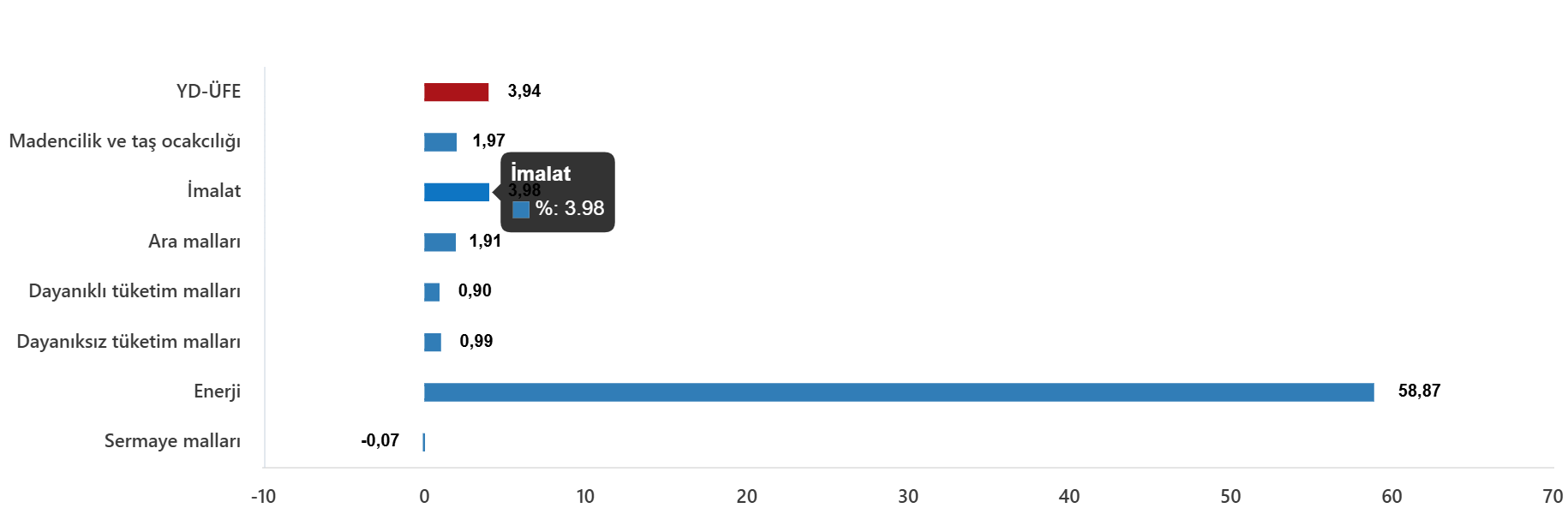 YD-ÜFE imalat ürünlerinde aylık %3,98 arttı