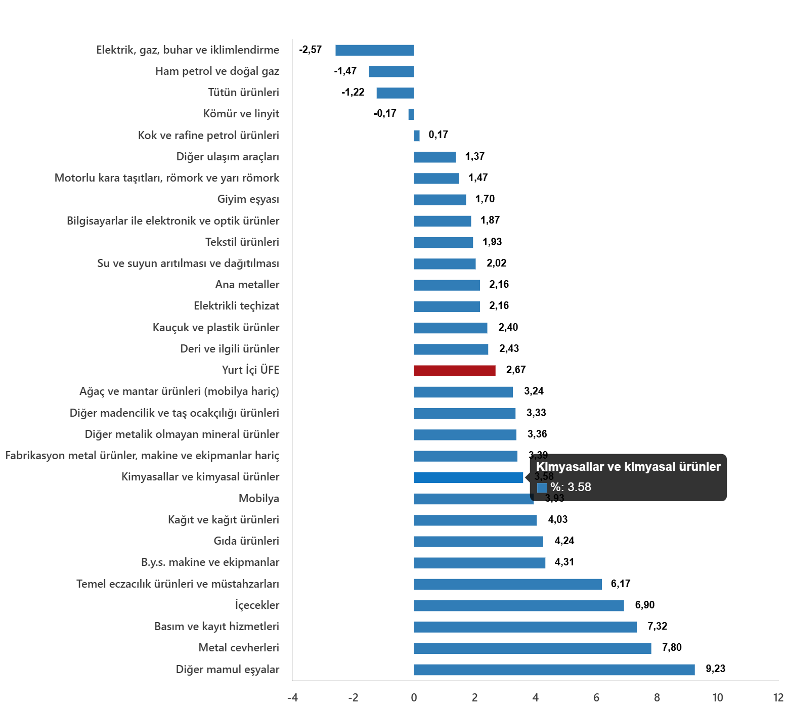Yurt İçi Üretici Fiyat Endeksi (Yİ-ÜFE) yıllık %27,17 arttı, aylık %2,67 arttı